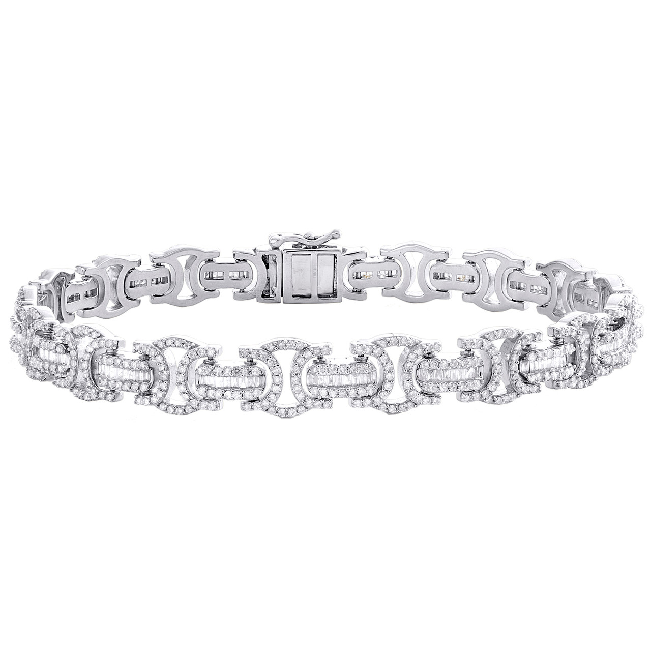 10K White Gold Round & Baguette Diamond 9mm Fancy Statement Bracelet 3.75 CT.