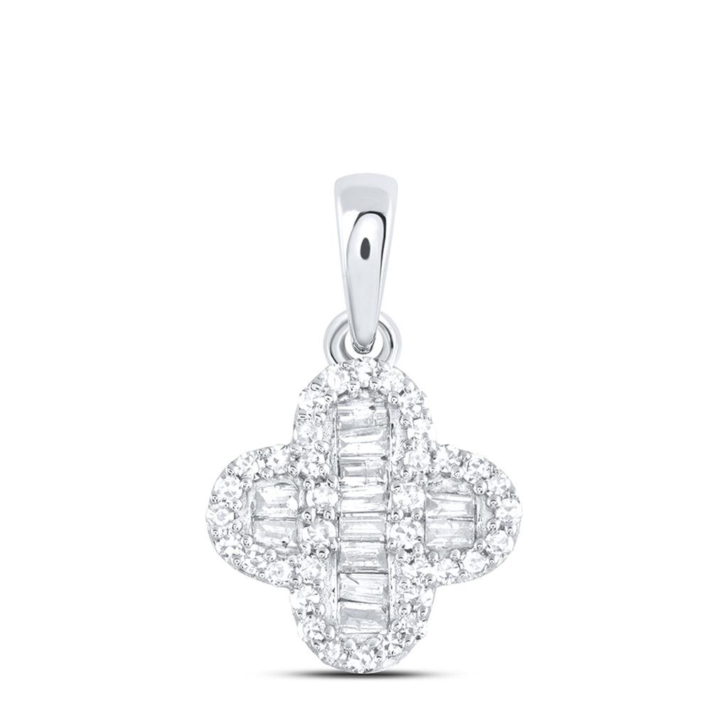 - 10K White Gold Round & Baguette Diamond Women's 4 Leaf Clover Good Luck Pendant 1/5 CT.