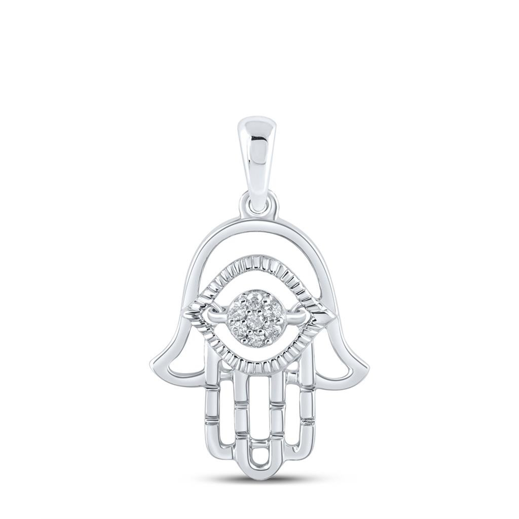- 10K White Gold Round Cut Diamond Women's Cluster Cut Out Hamsa Hand Pendant 1/20 CT.