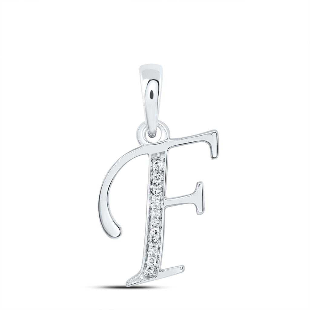 - 10K White Gold Round Cut Diamond Women's Initial "F" Letter Pendant 1/20 CT.