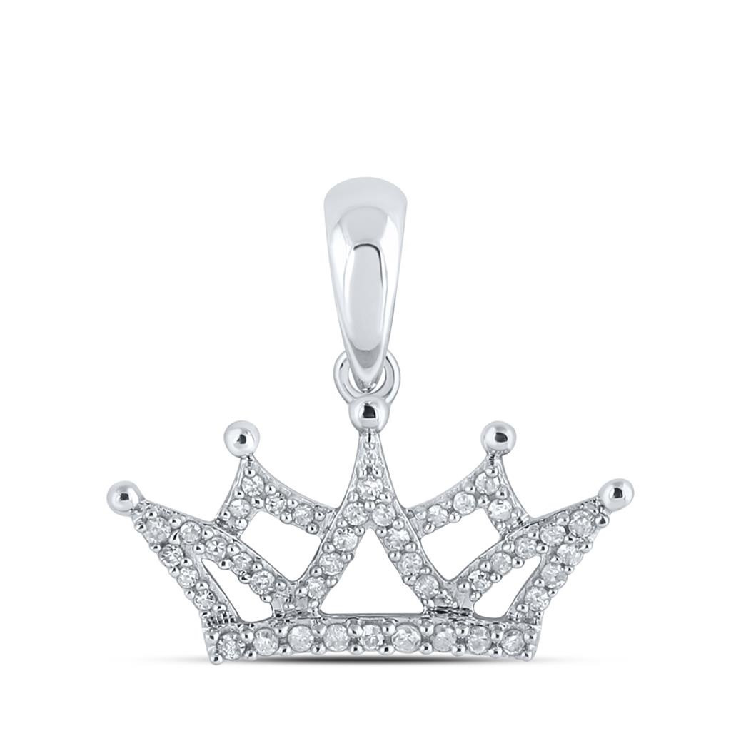 - 10K White Gold Round Cut Diamond Women's Queen's Crown Pendant 1/6 CT.