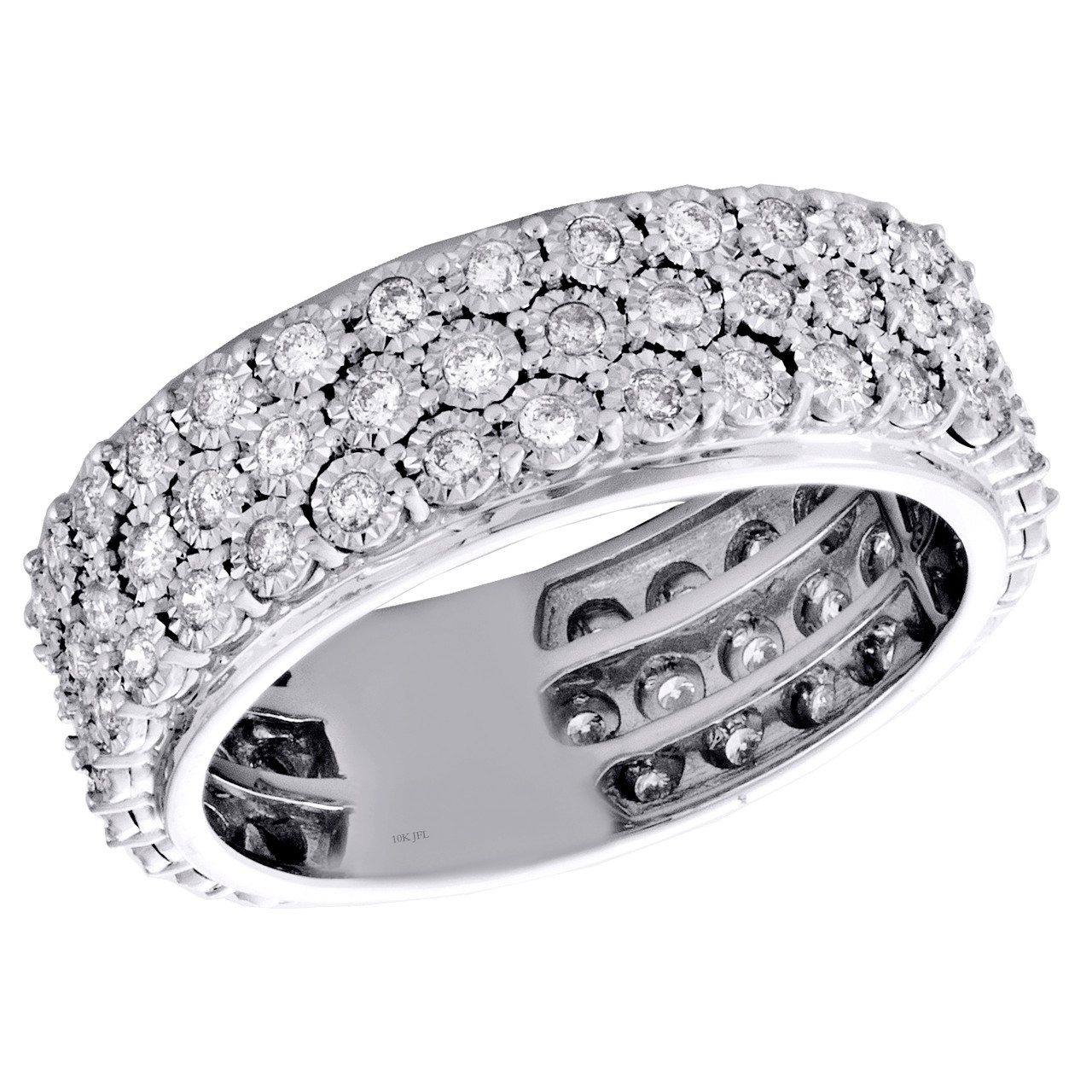 10K White Gold Round Diamond 3 Row Wedding Band 8mm Statement Pinky Ring 1 CT.