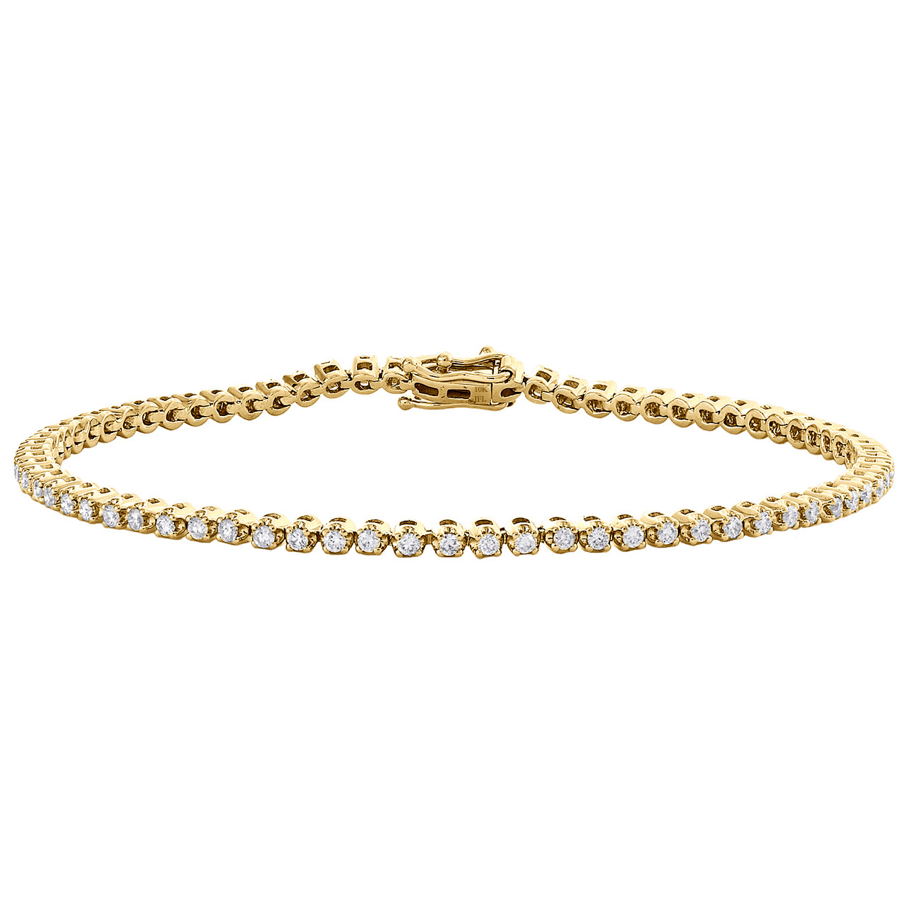 (6.40 gr. of 10K Yellow Gold | Total Carat Weight: 1.20 ct. t.w. of White Diamonds | Length: 7" | Width: 2.50mm | Clarity: SI2 - I1 | Color: H - I | Women's Genuine Round Cut Diamond Classic Statement Tennis Bracelet U-Shape 4 Prong Setting)