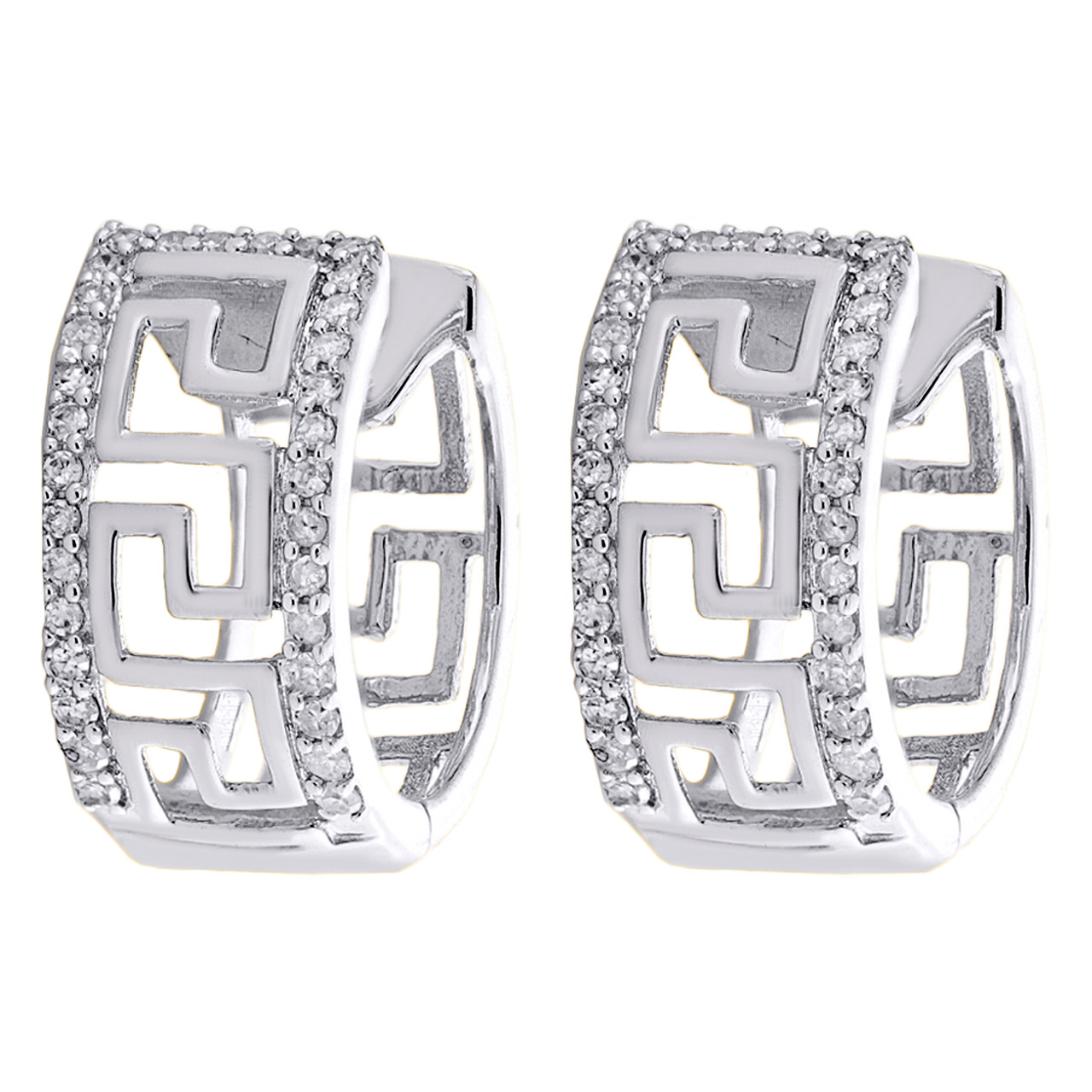 (2.3 gr. of 10K White Gold | Total Carat Weight: 0.20 ct. t.w. of White Diamonds | Long: 13mm | Width: 13mm | Thickness: 6mm | Clarity: I1 - I3 | Color: I - J | Women's Genuine Round Diamond Fancy Huggie / Hoop Greek Key Statement Earrings)