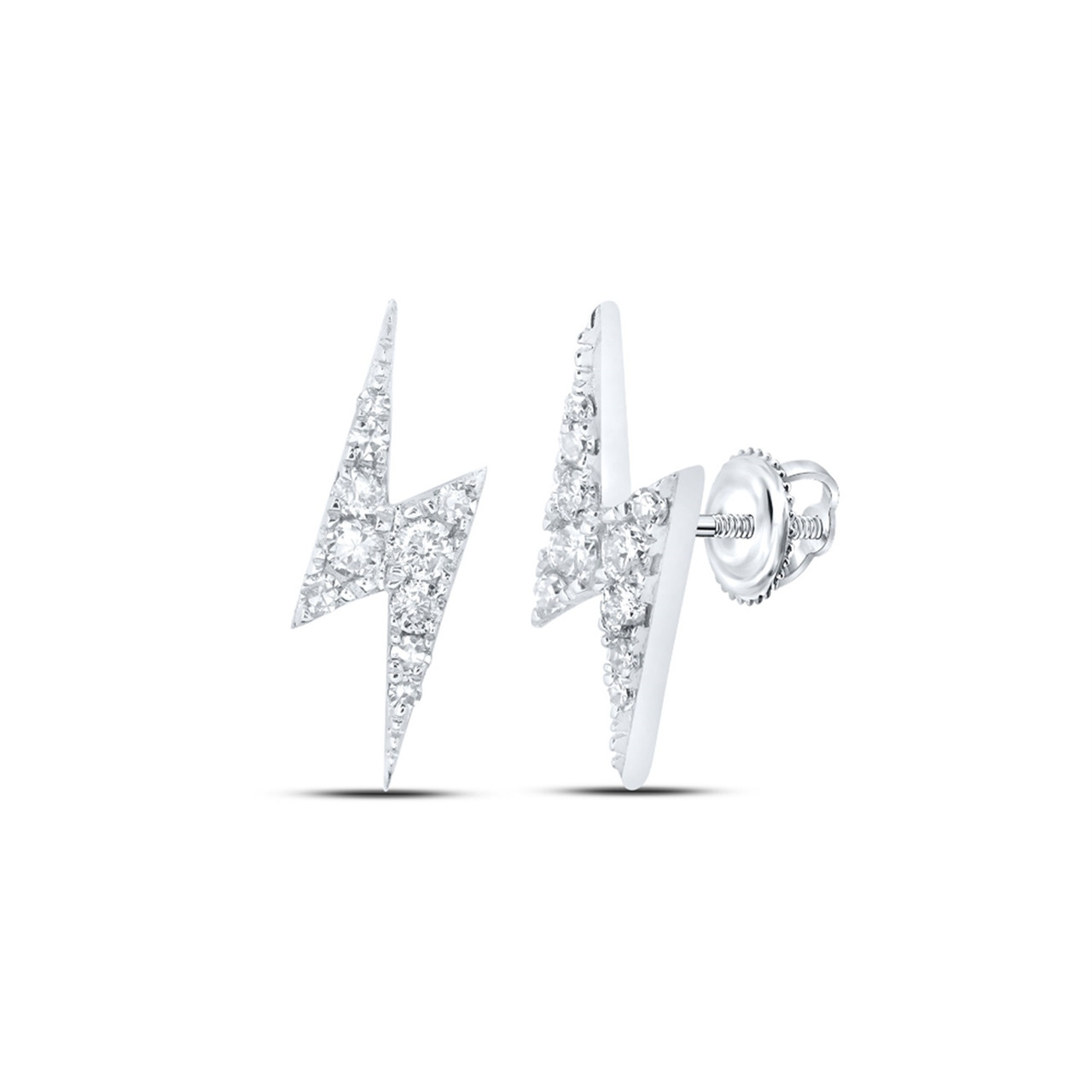 - 10K White Gold Round Diamond Lightning Bolt Earring 15mm Statement Stud 1/6 CT.
