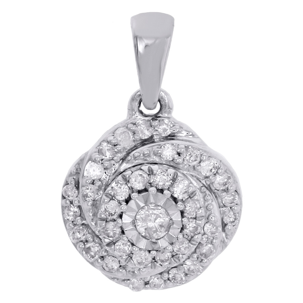 (2.1 gr. of 10K White Gold | Total Carat Weight: 0.33 ct. t.w. of white diamonds | Length: 0.70" | Width: 0.45" | Clarity: I1 - I3 | Color: J - K | Women's Real Genuine Round Diamond Swirl Fashion Pendant Charm)