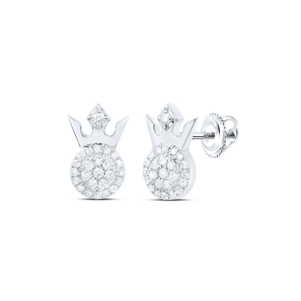 10K White Gold Round Diamond Unisex Halo Circle w/ Crown Stud Earrings 1/5 CT