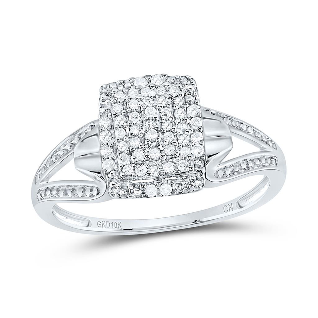 - 10K White Gold Round Diamond Women's Cluster Rectangle Heart Split Ring 1/6 CT