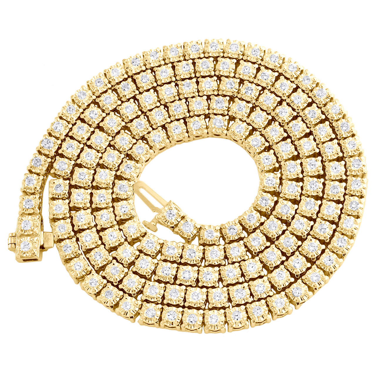 (34 gr. of 10K Yellow Gold | Total Carat Weight: 5.60 ct. t.w. of White Diamonds | Length: 22" | Width: 4mm | Clarity: SI2 | Color: G - H | Men's Genuine Round Solitaire Diamond Tennis Chain 4 Prong Bezel Mounting Statement Choker Necklace)