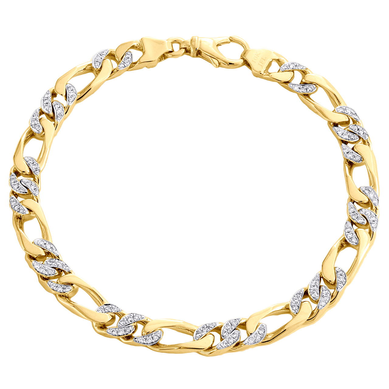 - 10K Yellow Gold 6.50mm Handset Diamond 3D Figaro Link Bracelet 8.50" | 0.94 CT.