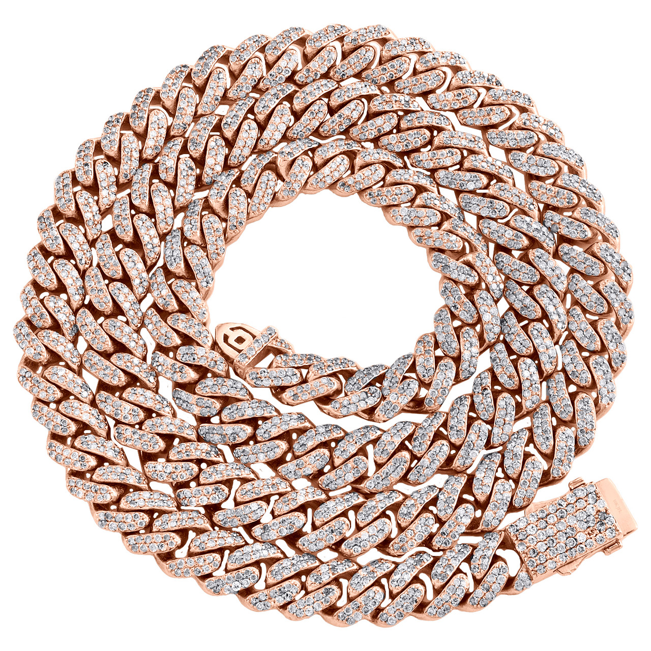 (88.3 gr. of 10K Rose Gold | Total Carat Weight: 11.67 ct. t.w. of White Diamonds | Length: 22" | Width: 8mm | Clarity: I1 - I2 | Color: H - I | Men's Genuine Round Cut Diamond Domed Miami Cuban Link Necklace Chain with Custom Box Clasp Lock)