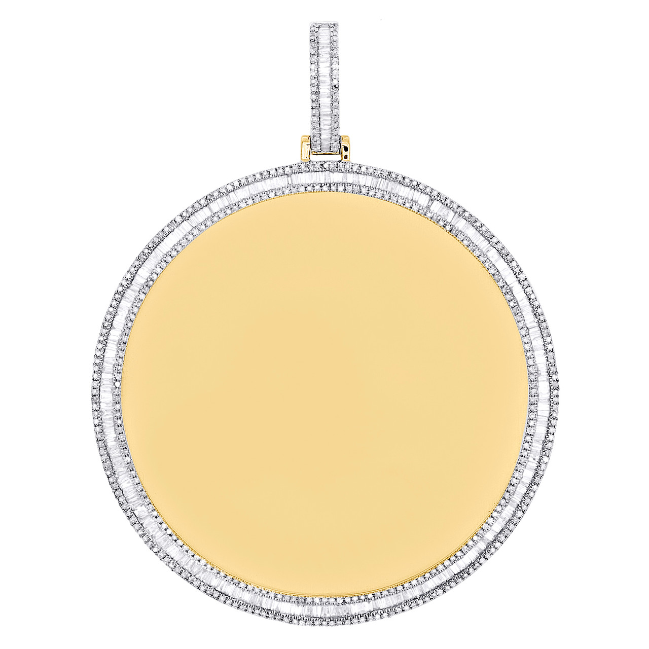 (26.6 gr. of 10K Yellow Gold | Total Carat Weight: 2.80 ct. t.w. of White Diamonds | Length: 3.15" (including bail) | Width: 2.25" | Thickness: 5mm | Clarity: SI2 - I1 | Color: H - I | Men's Genuine Round and Baguette Diamond Memory Picture Frame Pendant Statement Charm)