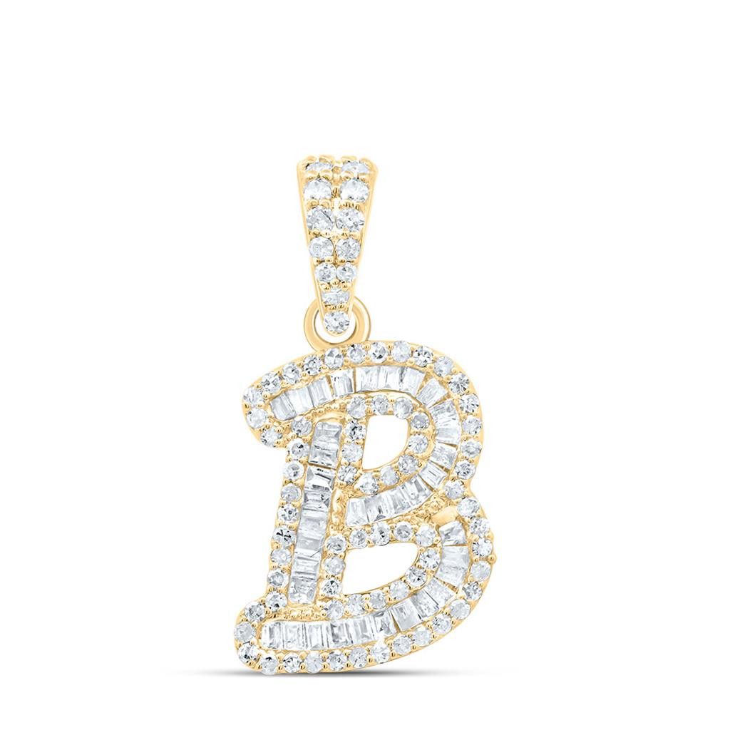 - 10K Yellow Gold Baguette Diamond Women's Script Font Initial B Pendant 3/8 CT