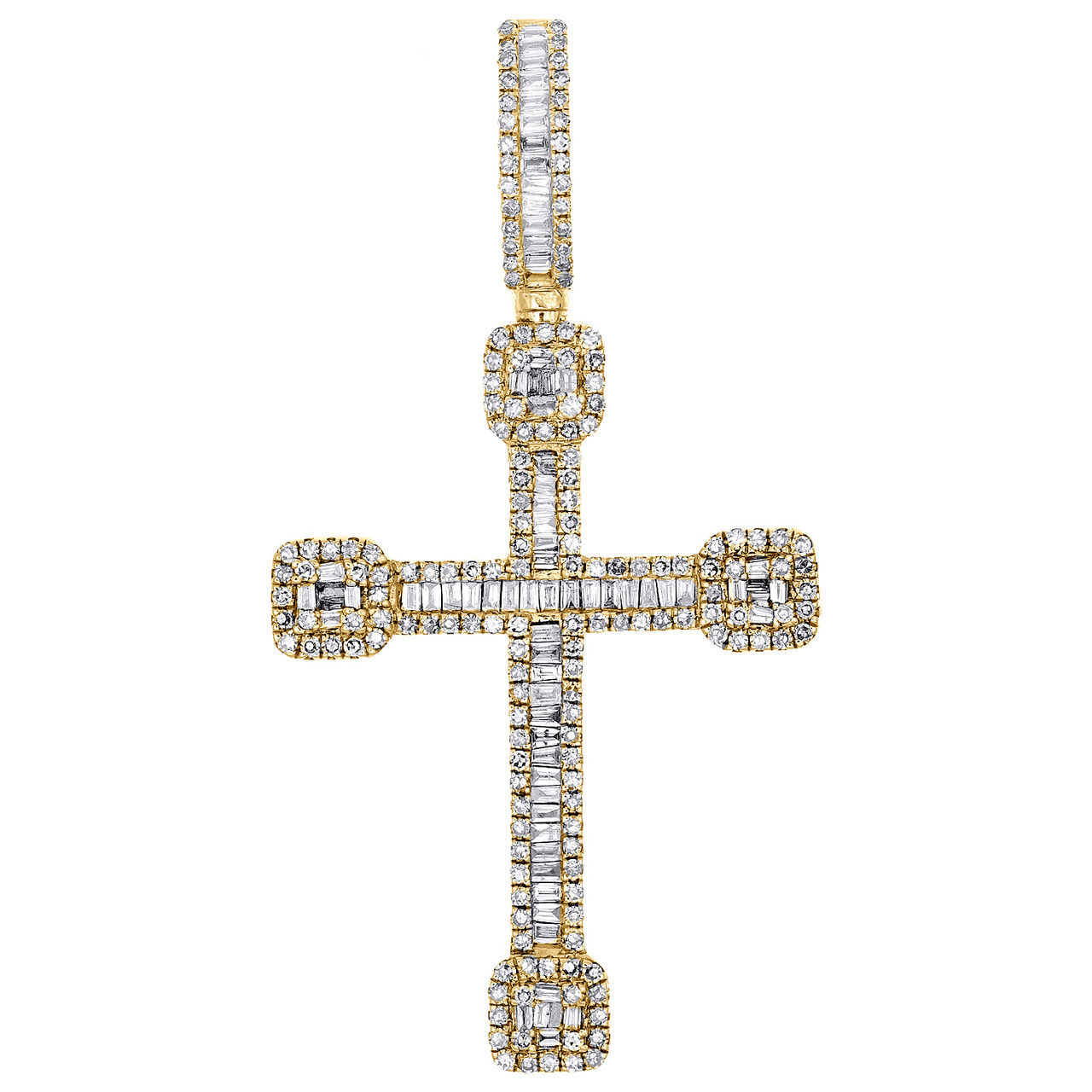 (6.7 gr. of 10k Yellow Gold | Total Carat Weight: 0.87 ct. t.w. of White Diamonds | Length: 1.75" (Including Bail) | Width: 0.95" | Clarity: I1 - I2 | Color: H - I | Women's Genuine Round and Baguette Diamond Ash Holder Cross Shaped Pendant Invisible Prong Charm)