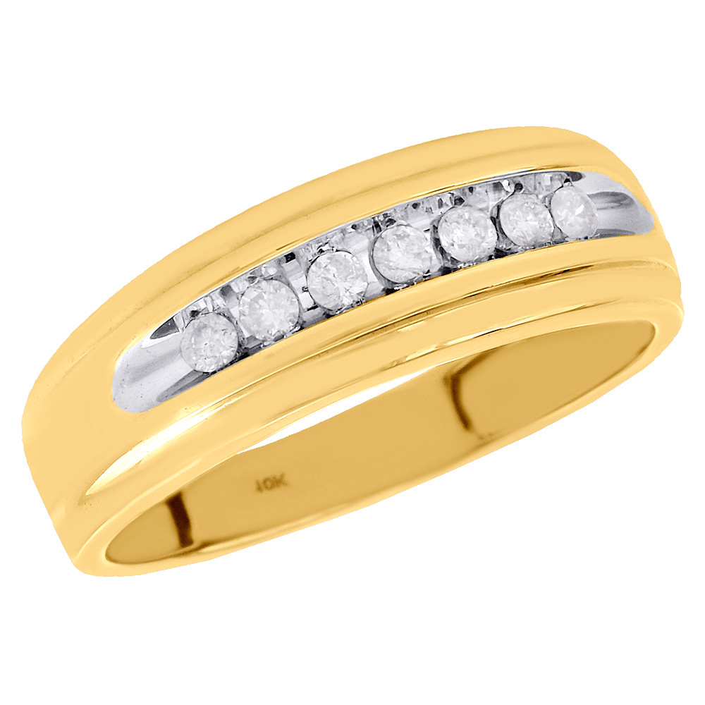 (2.6 grams of 10K Yellow Gold | 0.25 ct. total weight of white diamonds | 7mm band width | I1 - I2 Clarity | H - I Color | Men's Round Diamond Wedding Band Ring)