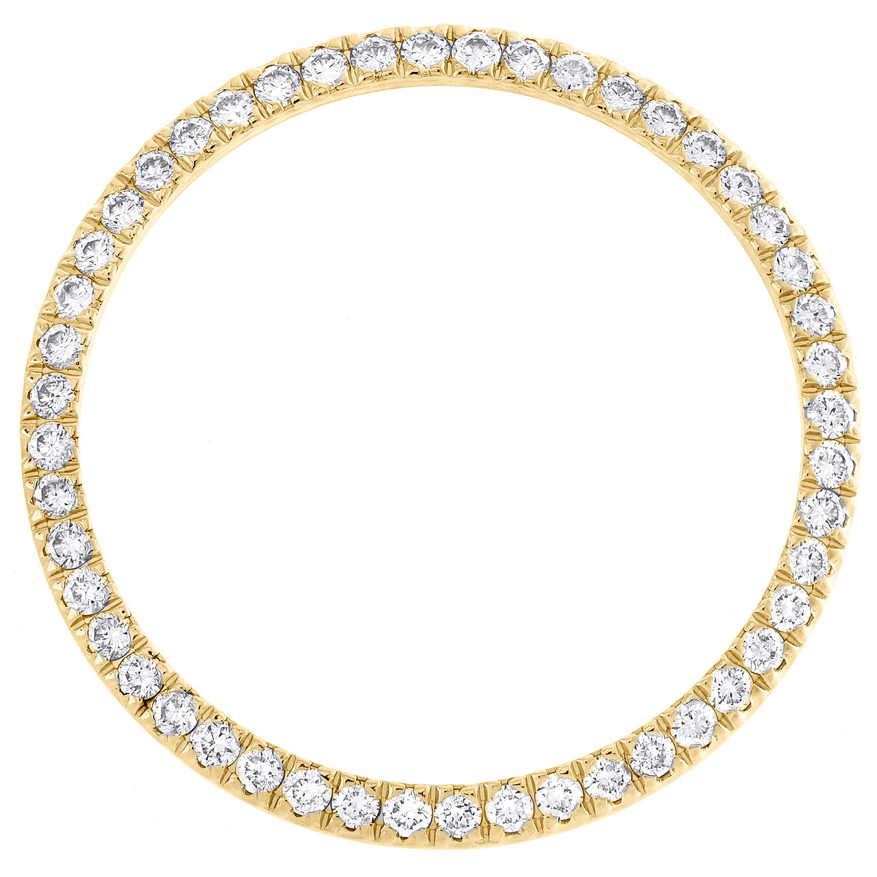 A brand new custom made U-Cut diamond bezel to fit Rolex Day-Date 36mm Watch. This Prong bezel is compatible with Rolex Day-Date 36mm models. The Diamonds are hand set for perfect finish. This bezel features 1.65 ct. t.w. of genuine natural Round diamonds. All diamonds are SI1 - SI2 clarity and H - I color. Bezel is crafted in 10k Yellow Gold and weighs approx. 3.9 gr.The Prong set bezel is a unique look and upgrades the classic DateJust Rolex.