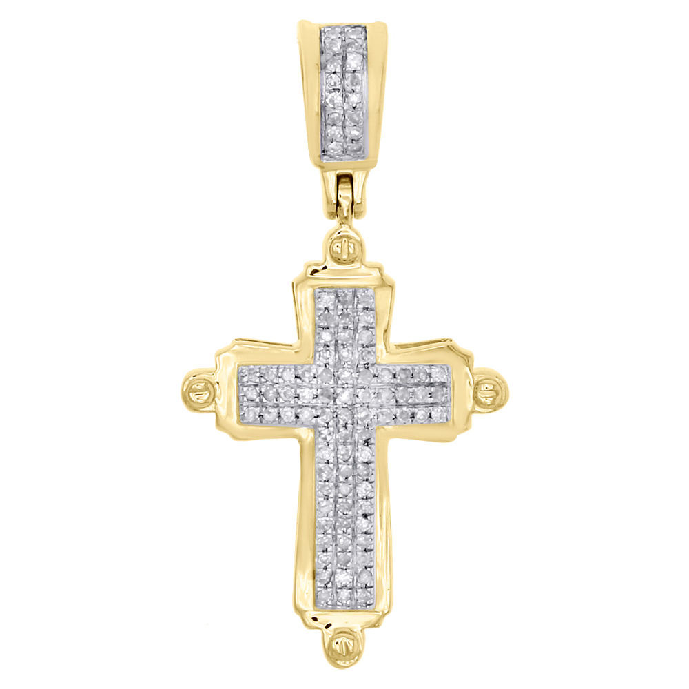 (1.50 gr. - 10K Yellow Gold | 0.14 ct. t.w. of White Diamonds | Length: 1.15" (including bail) | Width 0.60" | Clarity: I1 - I2 | Color: H - I | Ladies Real Round Cut Diamond Domed Puff Designer Style Cross Pendant Pave Charm)