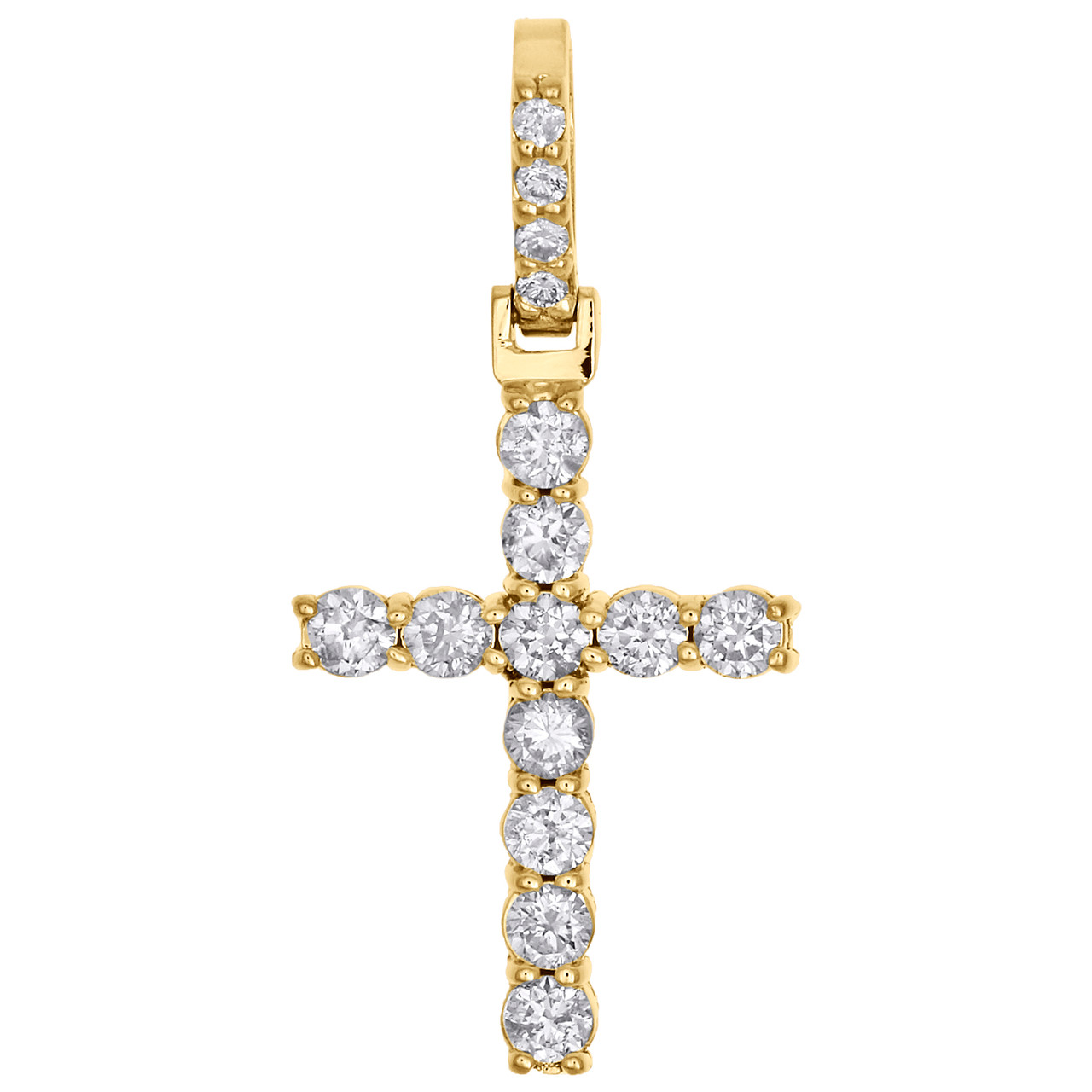 (5.4 gr. of 10K Yellow Gold | Total Carat Weight: 2.10 ct. t.w. of white diamonds | Length: 1.65" (including bail) | Width: 0.80" | Clarity: SI2 - I1 | Color: G - H | Unisex Genuine Diamond One Row Prong Set Solitaire Cross Pendant Classic Charm )