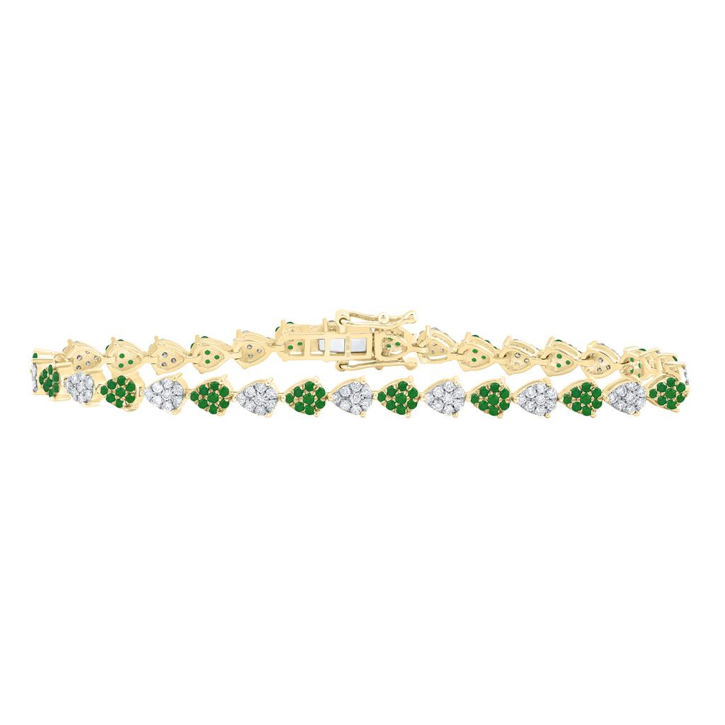 - 10K Yellow Gold Emerald & Diamond Women's Teardrop 7" Tennis Bracelet 1 CT