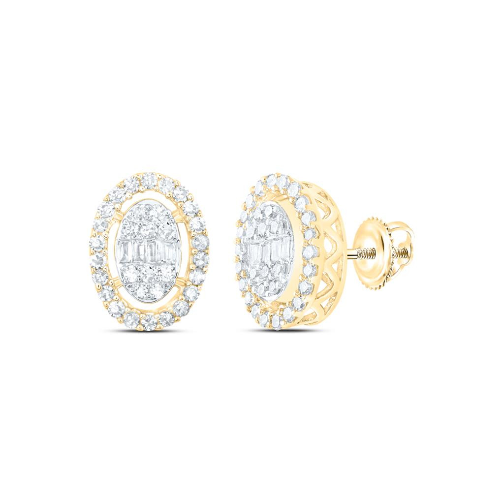(1.84 gr. of 10k Yellow Gold | Total Carat Weight: 0.38 ct. t.w. of White Diamonds | Length: 10.5mm | Width: 8mm | Clarity: I1 - I2 | Color: H - I | Unisex Adult Genuine White Baguette & Round Cut Diamond Oval Frame Statement Stud Earrings)