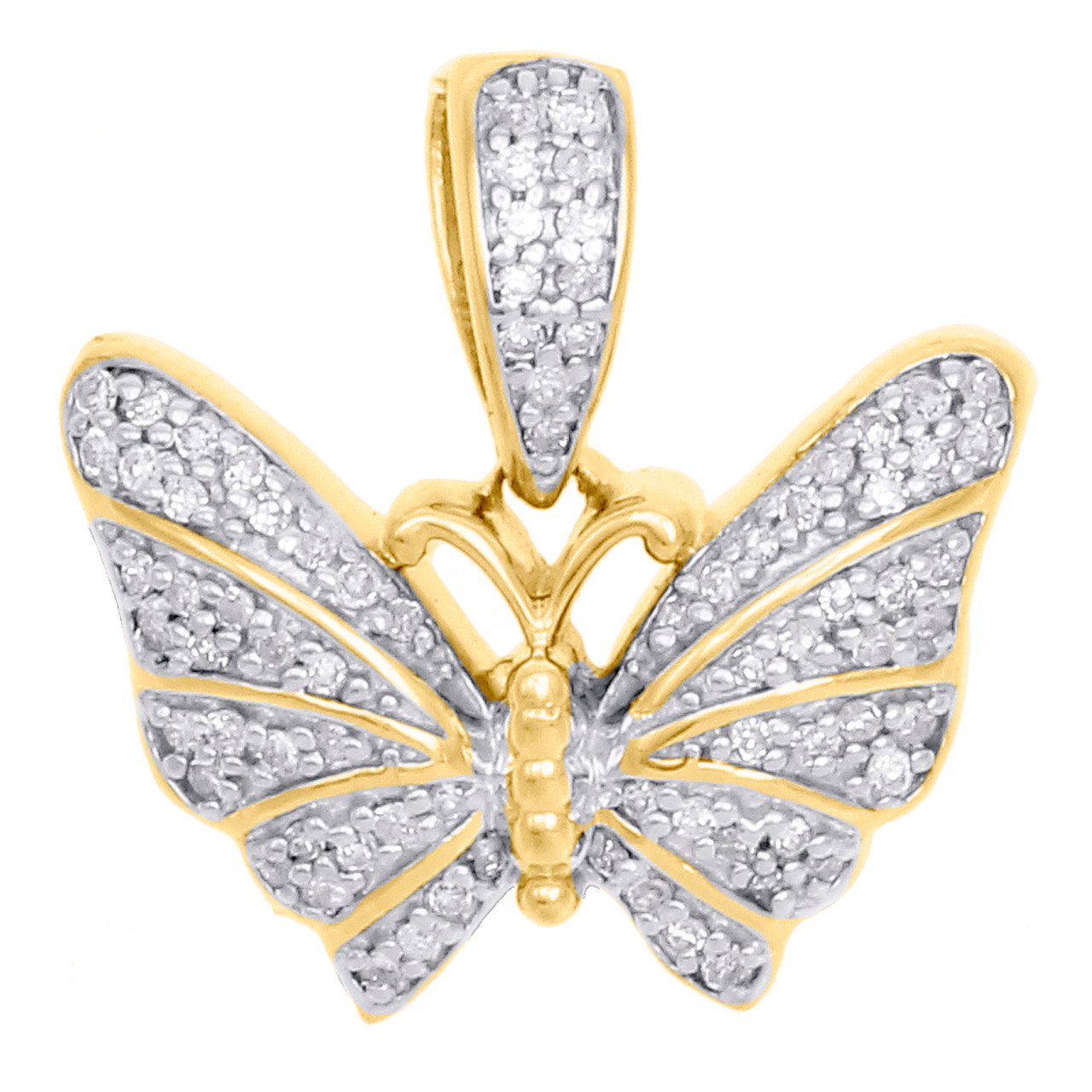 (2.7 gr. of 10K Yellow Gold | Total Carat Weight: 0.21 ct. t.w. of white diamonds | Length: 0.70" | Width: 0.70" | Clarity: I1 - I2 | Color: I - J | Women's Real Genuine Round Diamond Butterfly Pendant Pave Set Fancy Statement Charm)