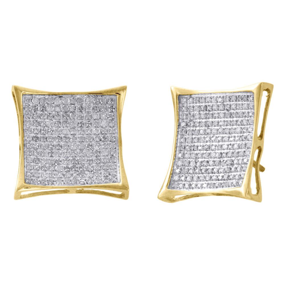 Stunning pair of studs added to our Rodeo Jewelers collection. These earrings are expertly crafted in 10k yellow gold and showcases real round diamonds in a kite shape. Radiant with 0.88 ct. total weight of diamonds. These particular studs consist of genuine round cut diamonds in a shared prong setting and buffed to a brilliant bright shine. Screw-backs for secure wear, these earrings will make a great gift for any occasion. Perfect size for men's, these studs are 16.95mm in width & 2.60mm thickness. Square frame give these earring depth and makes a bold fashion statement. Great gift for any occasion.