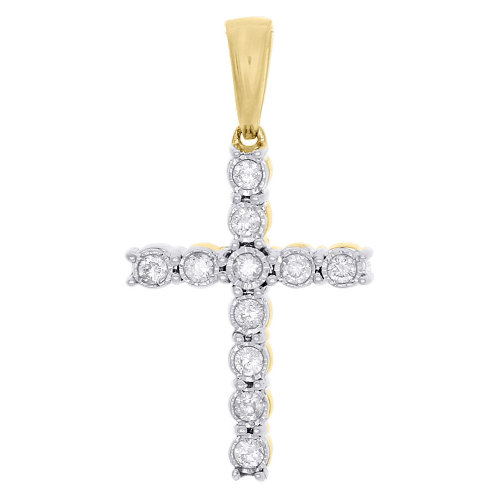 (2.3 grams of 10K Yellow Gold | 0.40 ct. total weight of white diamonds | 1.20" long & 0.65" wide | I1 - I2 Clarity & H - I Color | Diamond Miracle Set Cross Pendant Charm)