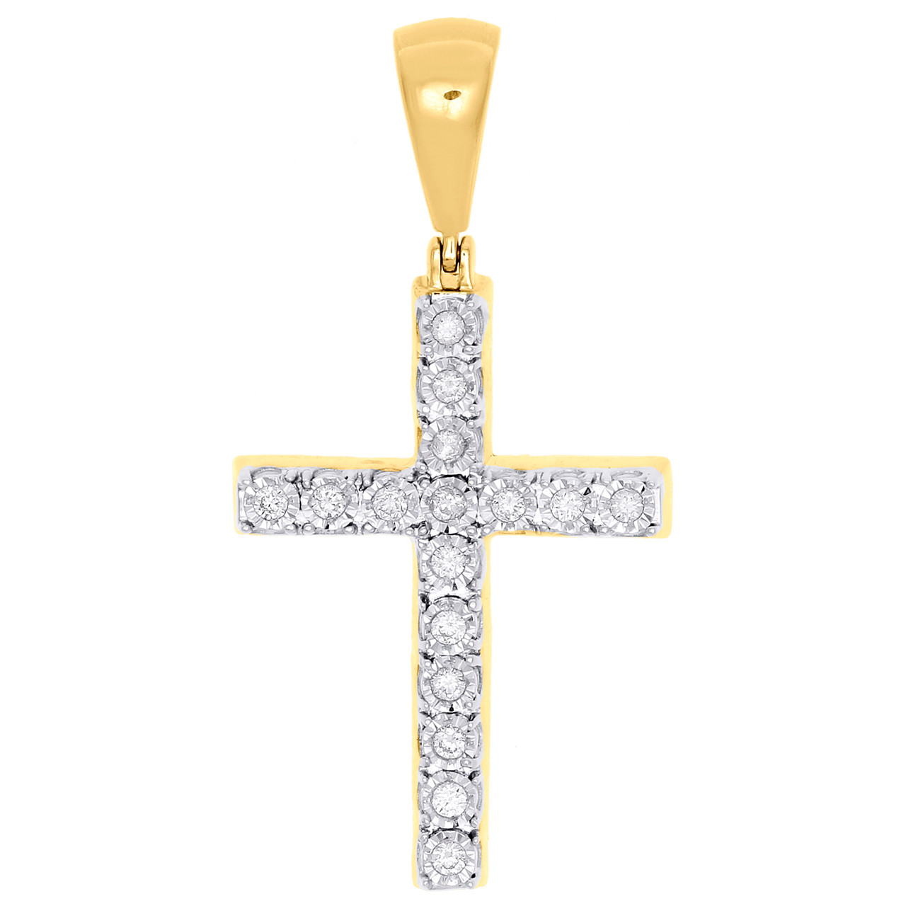 (4.6 gr. of 10K Yellow Gold | Total Cart Weight (TCW): 0.33 ct. of white diamonds | 1.70" long & 0.85" wide | Clarity: I1 - I2 | Color: I - J | Men's Real Diamond Miracle Set Cross Pendant Charm)