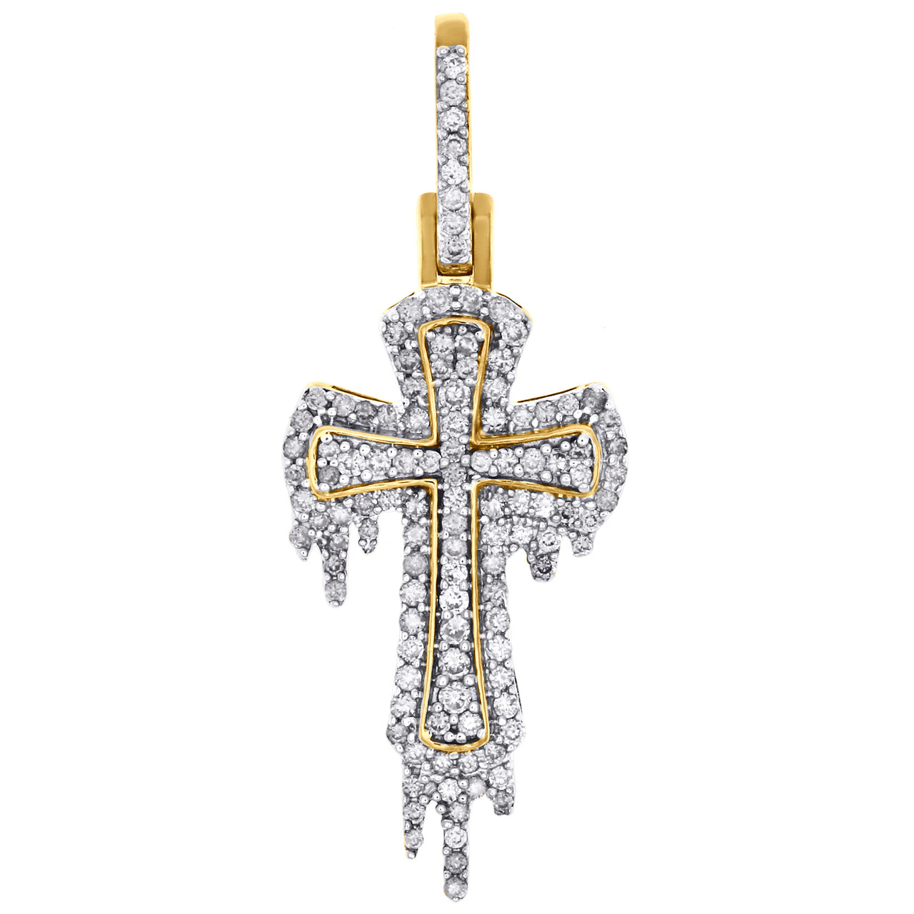 (3.5 gr. of 10K Yellow Gold | Total Carat Weight: 0.65 ct. t.w. of White Diamonds | Length: 1.50" (including bail) | Width: 0.60" | Clarity: I1 - I2 | Color: H - I | Men's Genuine Round Diamond Drip Cross Pendant Religious Pave Charm)