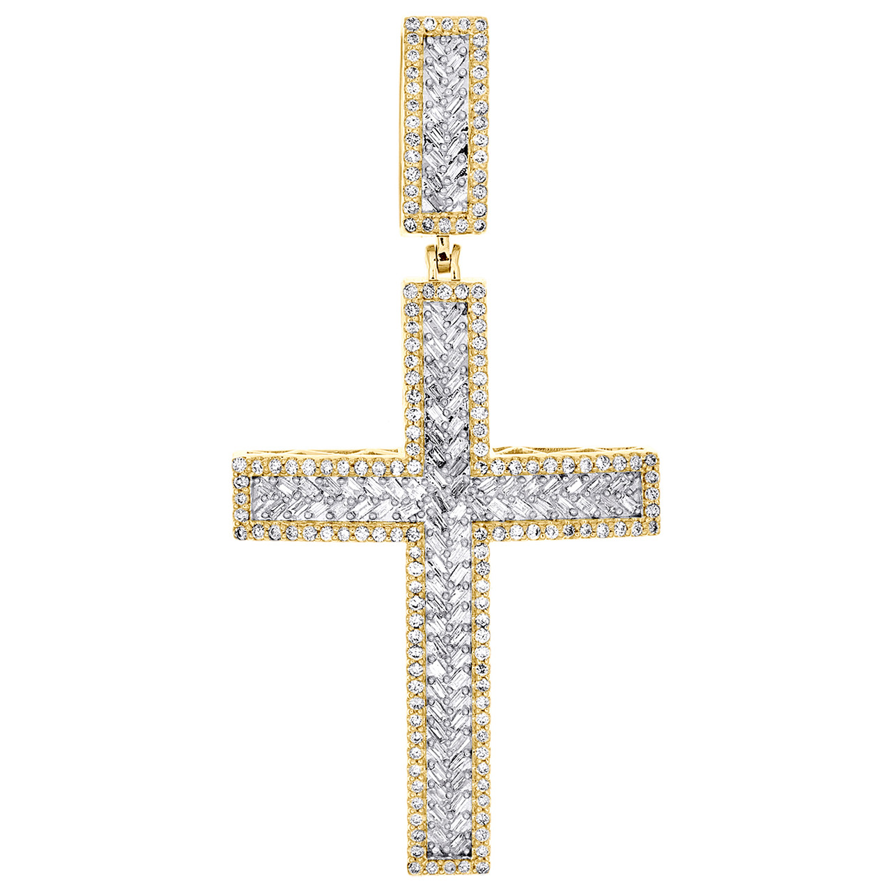 - 10K Yellow Gold Real Baguette Diamond Dome Religious Charm Cross Pendant 1.25 CT