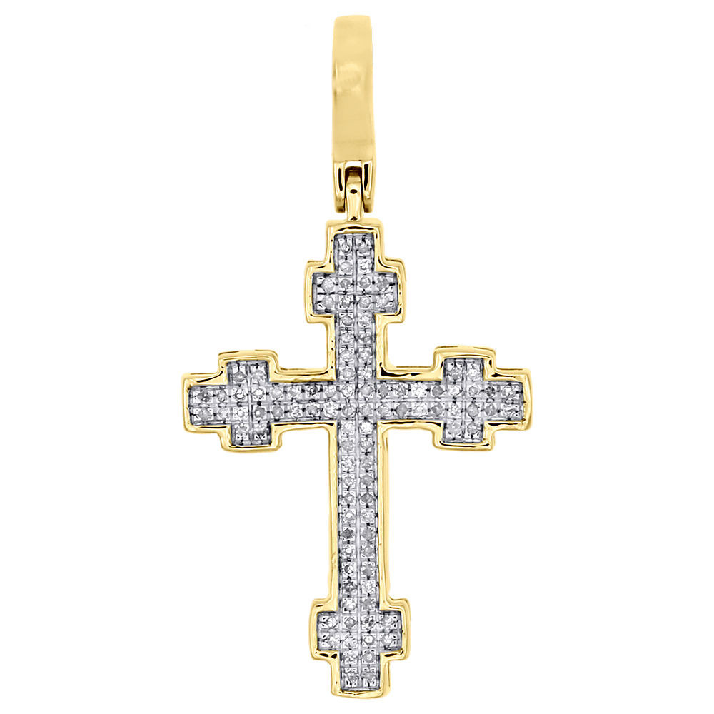 - 10K Yellow Gold Real Diamond Cross Designer Pendant 1.30" Mini Pave Charm 1/6 CT