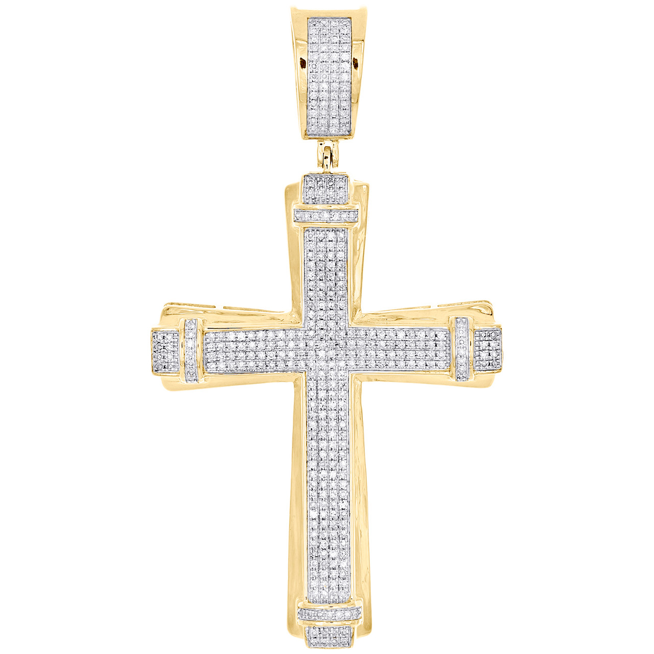 (7.8 gr. of 10k Yellow Gold | Total Carat Weight: 0.78 ct t.w. of White Diamonds | Length: 2.25" (including bail) | Width: 1.25" | Clarity: SI2 - I1 | Color: H - I | Men's Genuine Round Diamond Concaved Cross Pendant Religious Charm)