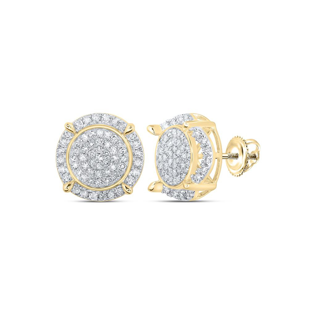- 10K Yellow Gold Real Diamond Unisex 15mm Cluster Tier Circle Stud Earrings 1 CT
