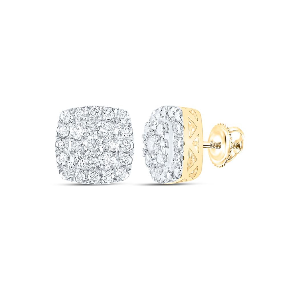 10K Yellow Gold Real Diamond Unisex 8mm Cluster Halo Square Stud Earrings 1 Ct