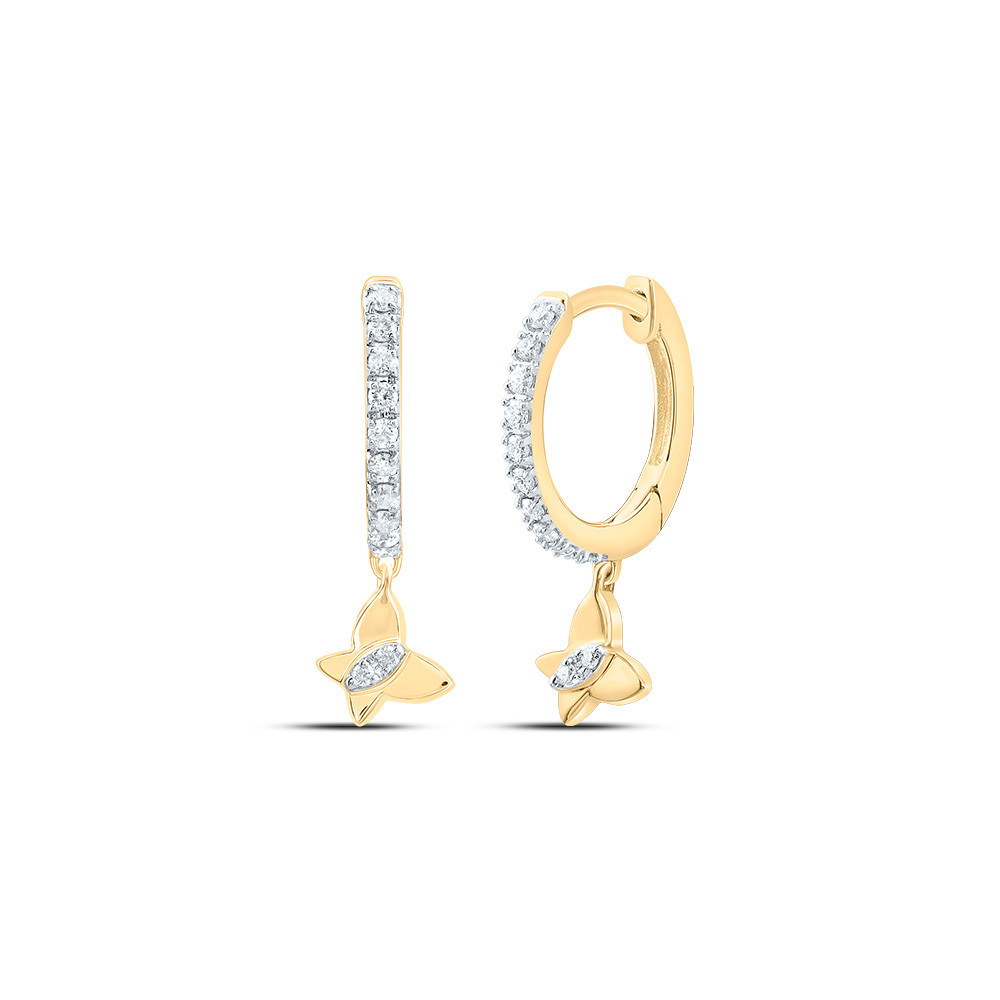 - 10K Yellow Gold Real Diamond Women's Butterfly Dangle Round Hoop Earring 1/10 CT