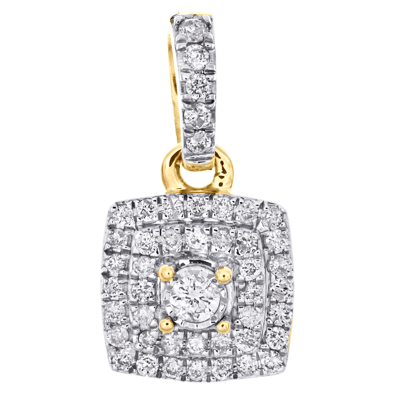 (0.80 gr. of 10K Yellow Gold | Total Carat Weight: 0.25 ct. t.w. of White Diamonds | Length: 0.65" (including bail) | Width: 0.35" | Clarity: SI2 - I1 | Color: H - I | Genuine Diamond Solitaire Halo Frame Cluster Pendant Fancy Statement Slide Charm)