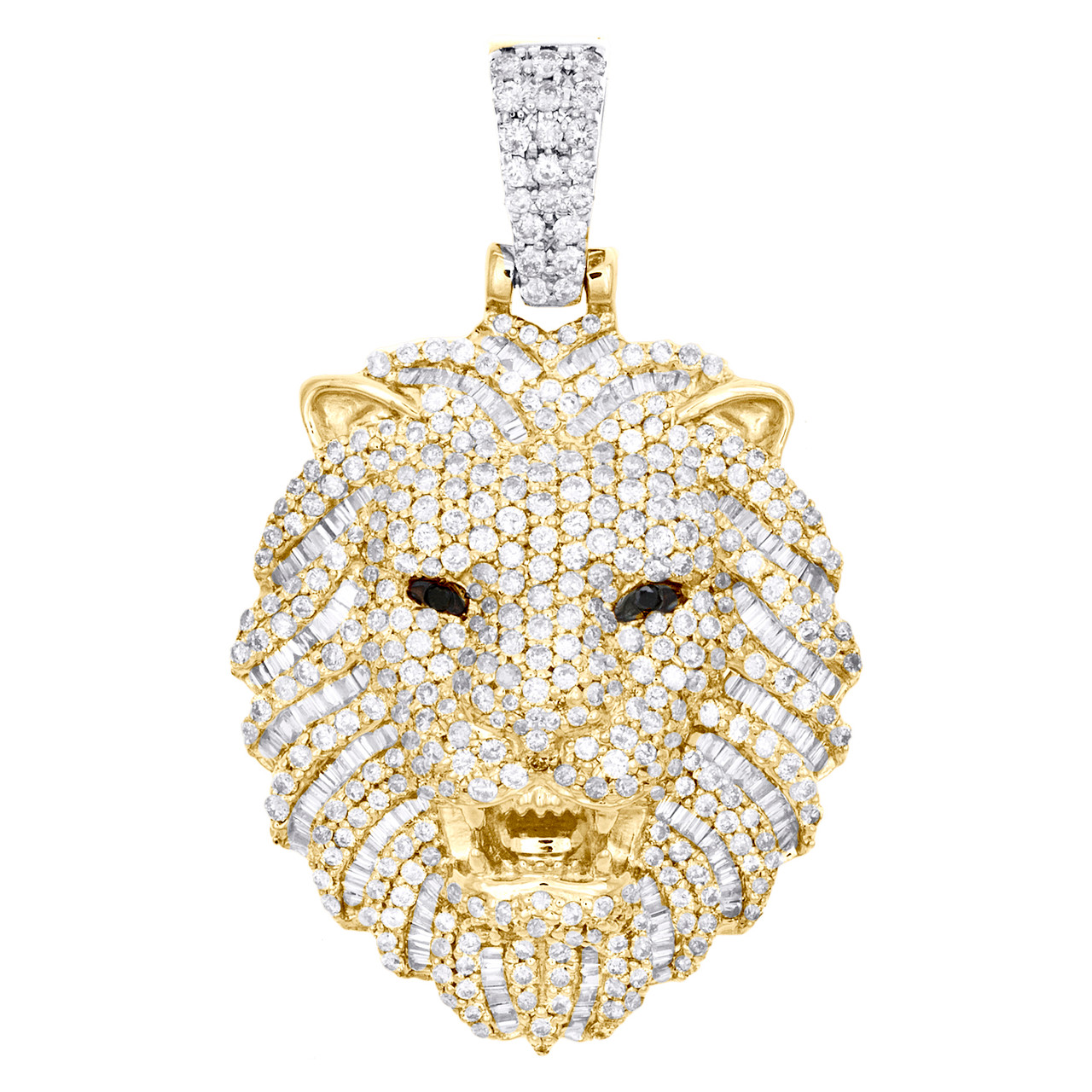 - 10K Yellow Gold Round & Baguette Diamond Lion Head Pendant Pave Charm 2.70 CT.