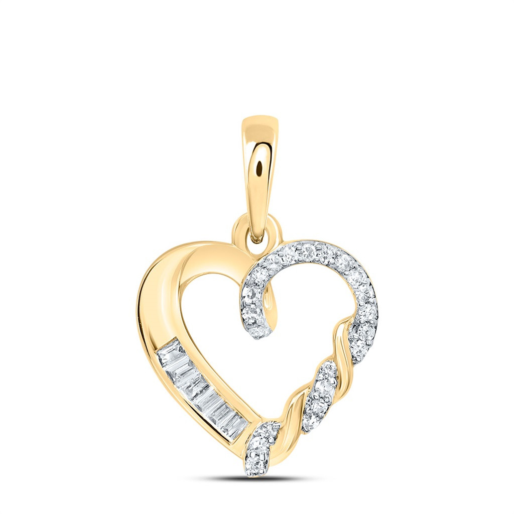- 10K Yellow Gold Round & Baguette Diamond Women's Braided Open Heart Pendant 1/12 CT.