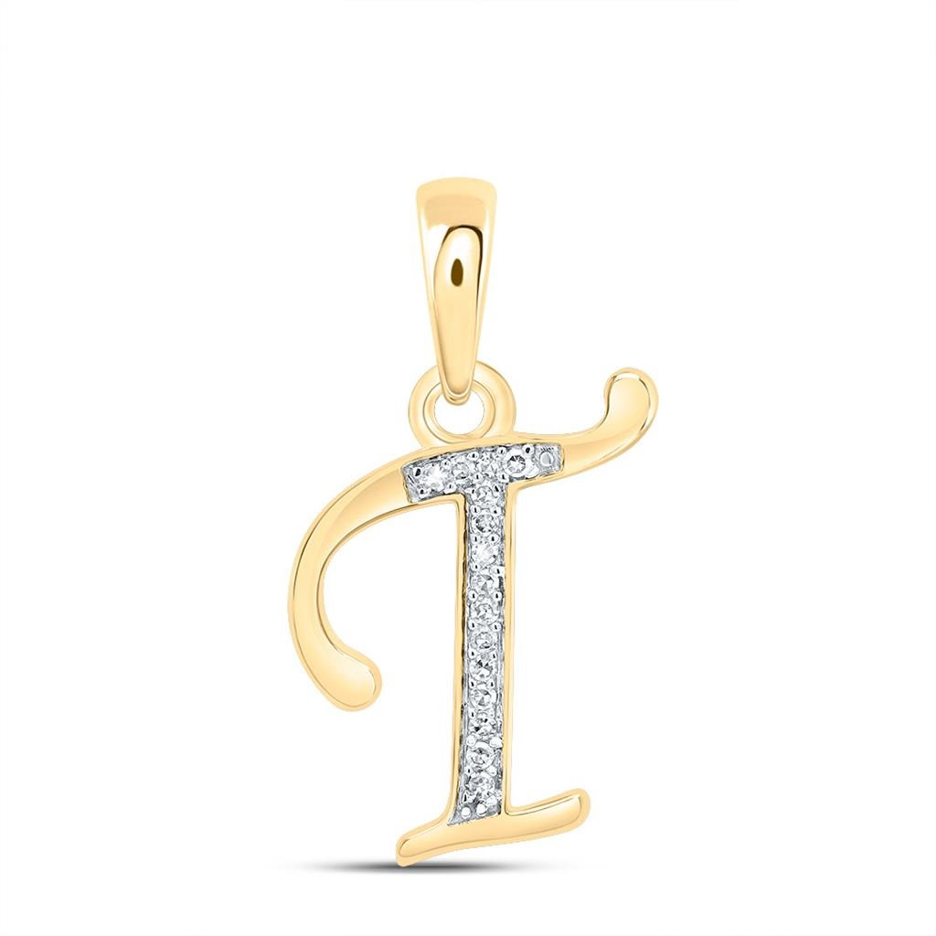 - 10K Yellow Gold Round Cut Diamond Women's Initial 'T' Letter Pendant 1/20 CT.