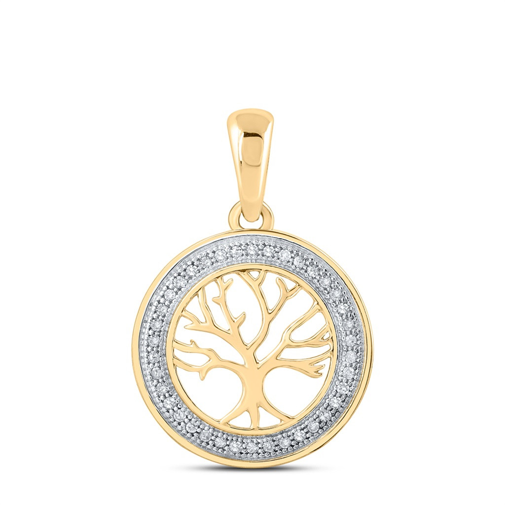 - 10K Yellow Gold Round Cut Diamond Women's Tree of Life Medallion Circle Pendant 1/10 CT.