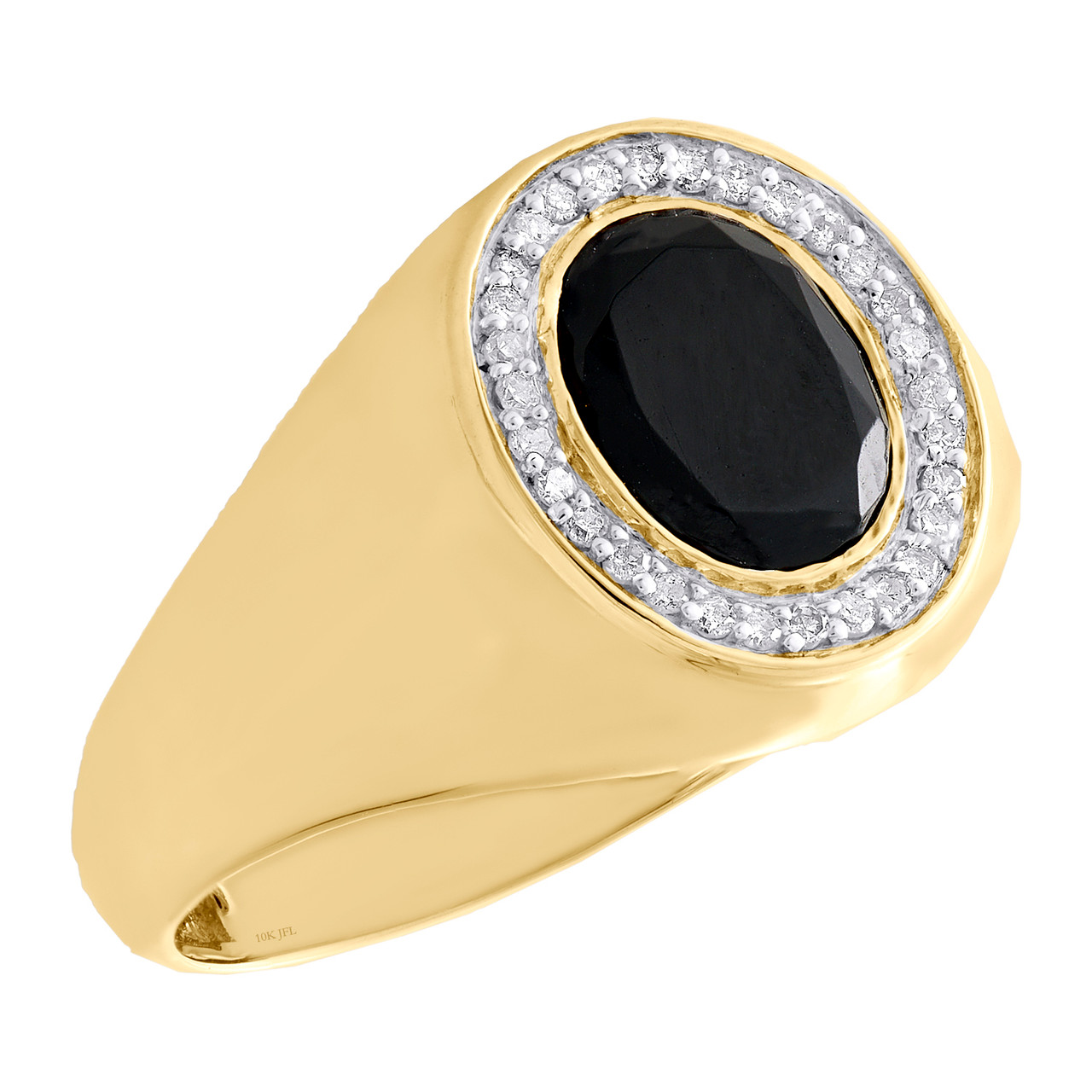 (4 gr. of 10K Yellow Gold | Total Carat Weight: 0.16 ct. t.w. of White Diamonds | Width: 14.5mm | Ring Size: 10 | Clarity: I1 - I3 | Color: I - J | Men's Oval Cut Onyx and Round Diamond Oval Frame Statement Pinky Ring Wedding Band)