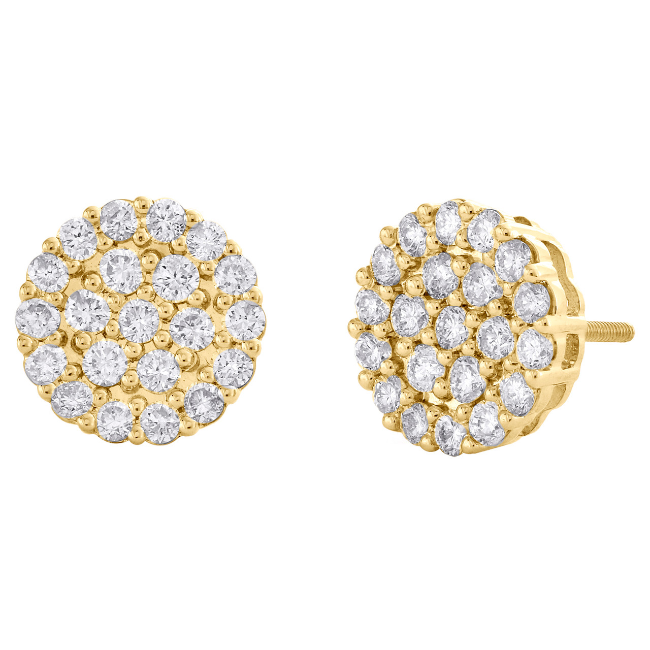 - 10K Yellow Gold Round Diamond Circle Cluster Stud 11.50mm Halo Earrings 1.37 CT