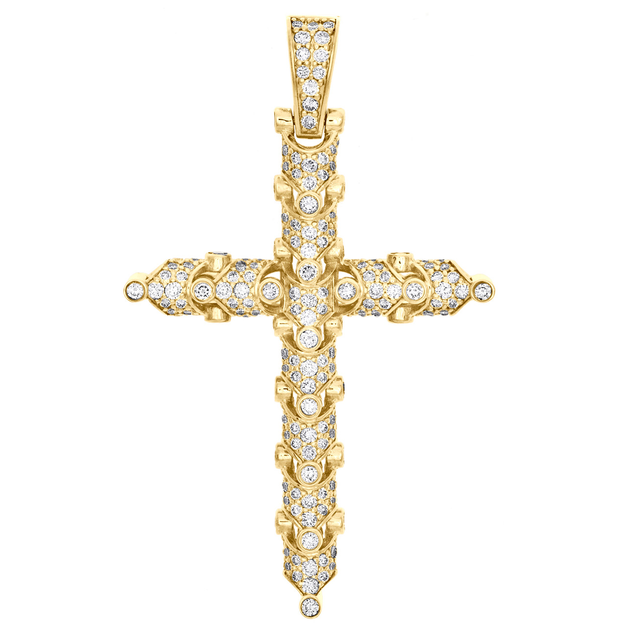 (8.8 gr. of 10K Yellow Gold | Total Carat Weight: 2.43 ct. t.w. of White Diamonds | Length: 2.25" (including bail) | Width: 1.40" | Thickness: 6mm | Clarity: I1 - I2 | Color: H - I | Men's Genuine Round Diamond Fancy Statement Cross Pendant Pave Charm)