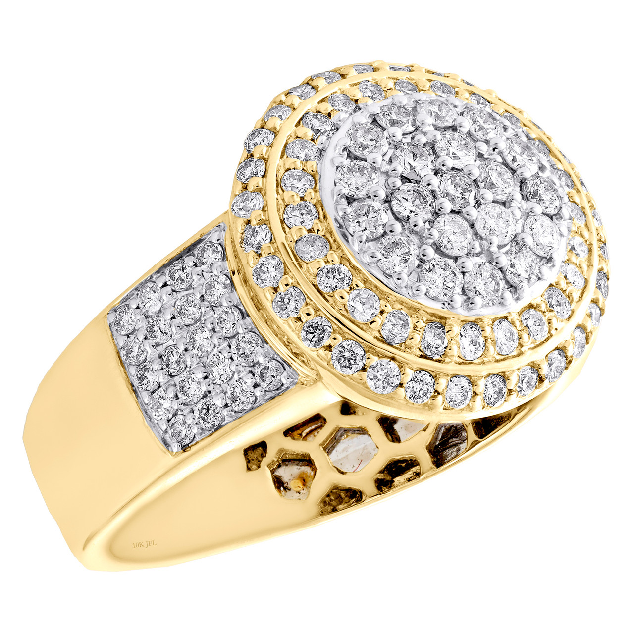 (8 gr. of 10K Yellow Gold | Total Carat Weight: 1.50 ct. t.w. of White Diamonds | Width: 16mm |Ring Size: 10 | Clarity: SI2 - I1 | Color: H - I | Men's Round Diamond Domed Circle Frame Statement Pinky Ring Band)