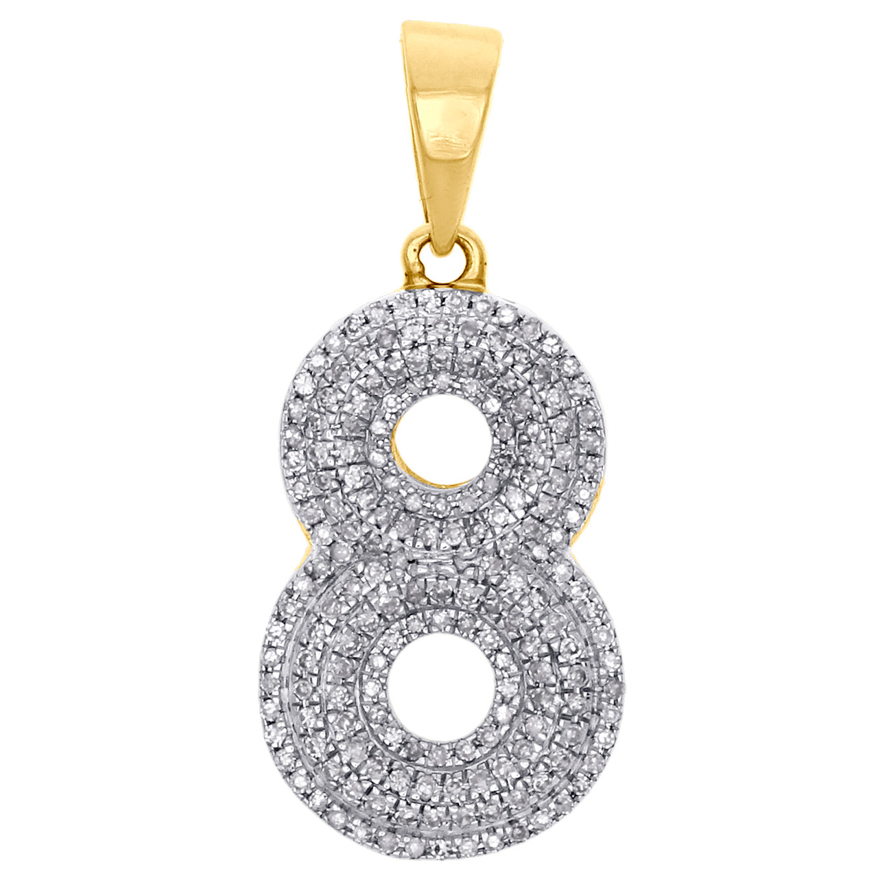 (3.4 gr. of 10K Yellow Gold | Total Carat Weight: 0.50 ct. t.w. of White Diamonds | Length: 1.35" (including bail) | Width: 0.60" | Clarity: I1 - I2 | Color: H - I | Unisex Genuine Diamond '8' Number Pendant Bubble Letter Pave Charm)