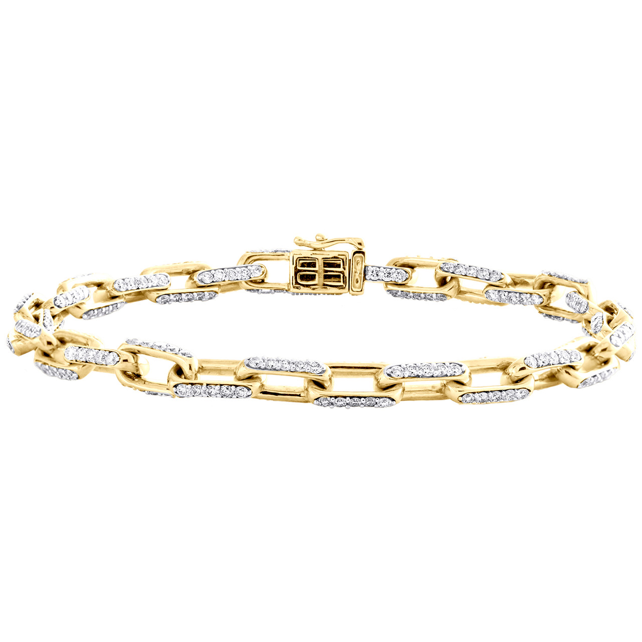 (16.1 gr. of 10K Yellow Gold | Total Carat Weight: 5 ct. t.w. of White Diamonds | Length: 8.50" | Width: 6mm | Clarity: I1 - I2 | Color: H - I | Genuine Round Diamond Rectangle Frame Cable / Rolo Link Statement Bracelet)