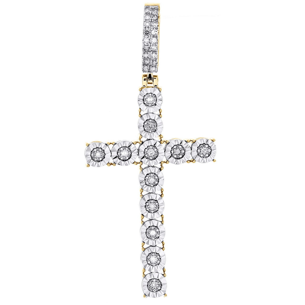 (3.3 gr. of 10K Yellow Gold | Total Carat Weight: 0.50 ct. t.w. of White Diamonds | Length: 2" (Including Bail) | Width: 1" | Thickness: 3mm| Clarity: I1 - I2 | Color: H - I | Men's Genuine Round Diamond Religious Cross Pendant Statement Charm)