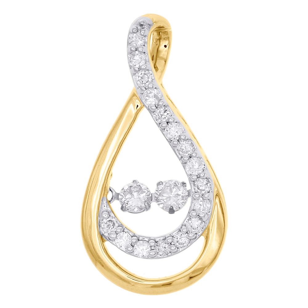 - 10K Yellow Gold Two Stone Solitaire Dancing Diamond Infinity Pendant 0.50 CT.