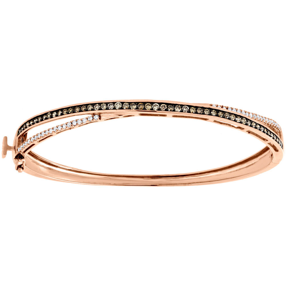 14K Rose Gold Brown & White Diamond Criss Cross 7.5" Bangle Ladies Bracelet 1 Ct