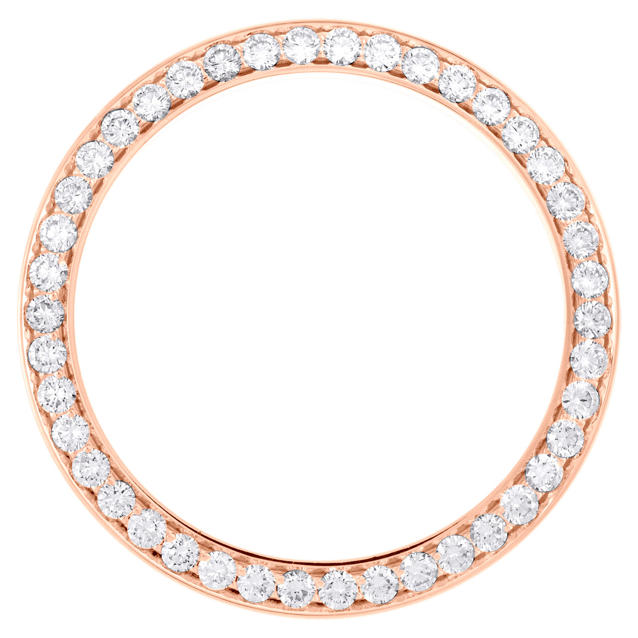 A brand new custom made diamond bezel to fit Men's Rolex DateJust 41. This bezel is compatible with Newer DateJust. Diamonds are hand set for perfect finish. This bezel features 3.20 ct. t.w. of genuine natural diamonds. All diamonds are VS1 -VS2 clarity and F-G color. Bezel is crafted in Solid 14K Rose Gold and weighs approx. 12.8 gr.. Each diamond is approx. 7.5 points and this bezel has 42 diamonds. The Bead-set bezel is a unique look and upgrades the classy Rolex.